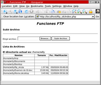 Script que contiene un formulario (form_ftp) que nos permite buscar un archivo y subirlo al Servidor FTP, además nos muestra una lista de los directorios y archivos del mismo.