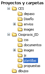 Si el proyecto es más complejo, como es el caso de un catálogo, un folleto publicitario con muchos contenidos, un sitio web, etc, será más conveniente una división en subcarpetas, con tantos niveles como sea necesario.