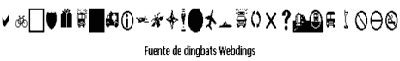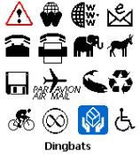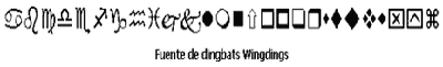 Otro tipo de gráficos ya diseñados son los dingbats o fuentes de símbolos, ficheros de fuentes Truetype o Type 1 con la particularidad de que en lugar de tener asignados caracteres alfabéticos o numéricos contienen dibujos monocromos, generalmente en blanco y negro.