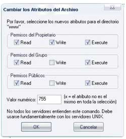 Más información sobre asignar permisos en: http://www.ignside.net/man/ftp/chmod.php