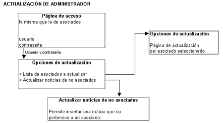 Se desarrollará un sistema para que la página muestre las noticias que vayan introduciendo los asociados y la asociación. El funcionamiento del módulo se puede ver a continuación.