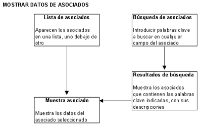 Las páginas web de la asociación mostrarán la información de cada asociado. En este apartado del desarrollo se crearán unas páginas que muestren los asociados extrayendo la información de la base de datos de asociados. El diagrama de funcionamiento se puede estudiar a continuación.