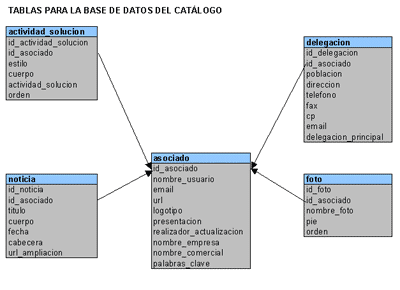 Cada asociado puede dar de alta hasta tres fotografías con sus productos o soluciones. El campo nombre_foto indica el nombre del archivo que contendrá la foto. El campo orden indica el orden con el que se presentará la foto en la ficha del asociado.