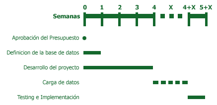 El desarrollo se completará en cuatro semanas, contando desde la aprobación del presupuesto. Con el desarrollo acabado se podrá proceder a la carga de datos.