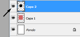 Podemos ocultar una capa, para que no se vea en la imagen, pero sin eliminarla, con el icono con forma de ojo que hay al lado de cada una de las capas de la ventana de capas. Esto es muy útil para dejar de mostrar elementos, pero sin perderlos del proyecto, por si acaso los queremos recuperar luego.