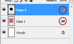 Para vincular las capas seleccionadas basta con accionar el menú "Capa - Vincular capas". Entonces aparecerá un símbolo de cadena al lado de las capas vinculadas.