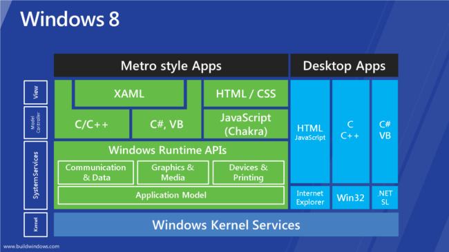 Antes de entrar en mayores detalles sobre una de estas aplicaciones y cómo podemos programarlas, empecemos por un vistazo general de la nueva arquitectura de Windows 8 y cómo encajan las Metro Apps en ella.