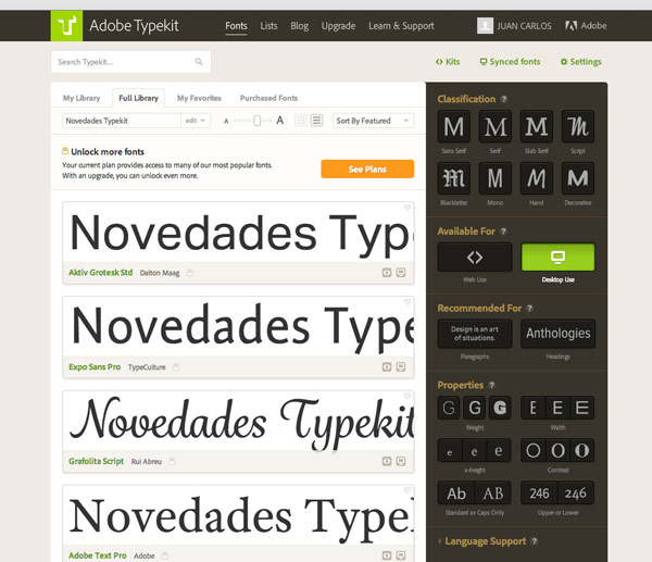 La galería de Adobe Typekit