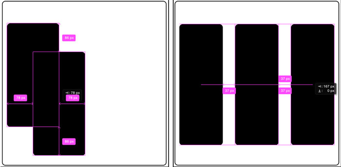 Ahora las guías nos van a mostrar las distancias entre los objetos cuando los desplacemos tanto horizontal como verticalmente y las distancia entre objetos. Todo ello para tener un control total a tiempo real del posicionamiento de un objeto con respecto al espacio y los demás objetos que lo rodean.