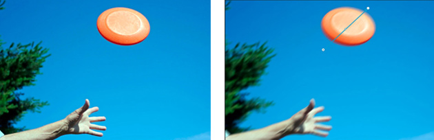 Al hacer el desenfoque de trazado lo realiza en toda la imagen y nos interesa, en el ejemplo, que solo sea en el frisbee tenemos 2 opciones para volver a enfocar el resto.