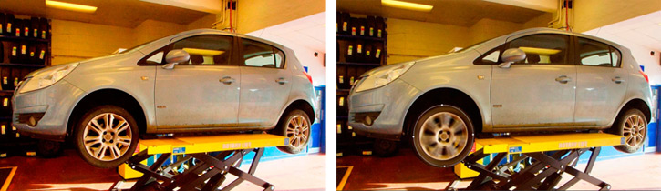 Fíjate en la rueda del coche en ambas imágenes: