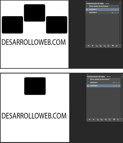 También tenemos la posibilidad de tener varias composiciones de apariencia, cambiando los estilos de una o más capas y guardando su estado.