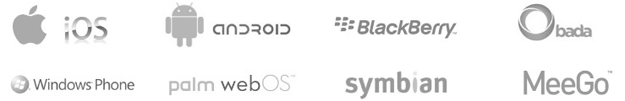 En la siguiente imagen podemos ver los logos de los sistemas operativos que jQuery Mobile soporta.