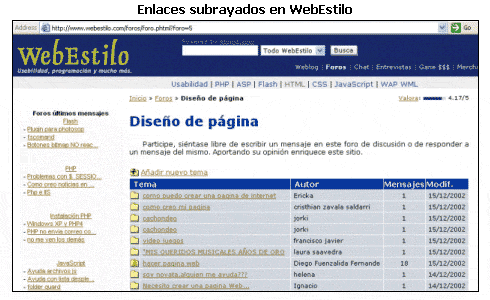 - El color de los enlaces conviene que sea el azul estándar del navegador o al menos permanecer subrayados y con un color bien diferenciado de los del resto de elementos textuales de la página.