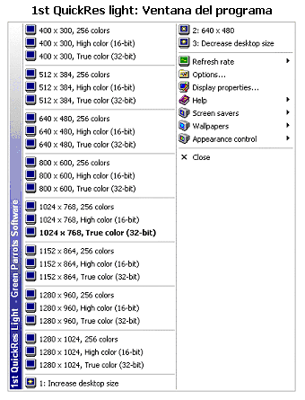 Propiedad de la empresa GreenParrots, 1 st QuickRes es una pequeña aplicación que nos ayuda a manejar las propiedades de nuestro monitor de forma rápida y cómoda. Podéis descargarla desde la dirección http://www.greenparrots.com
